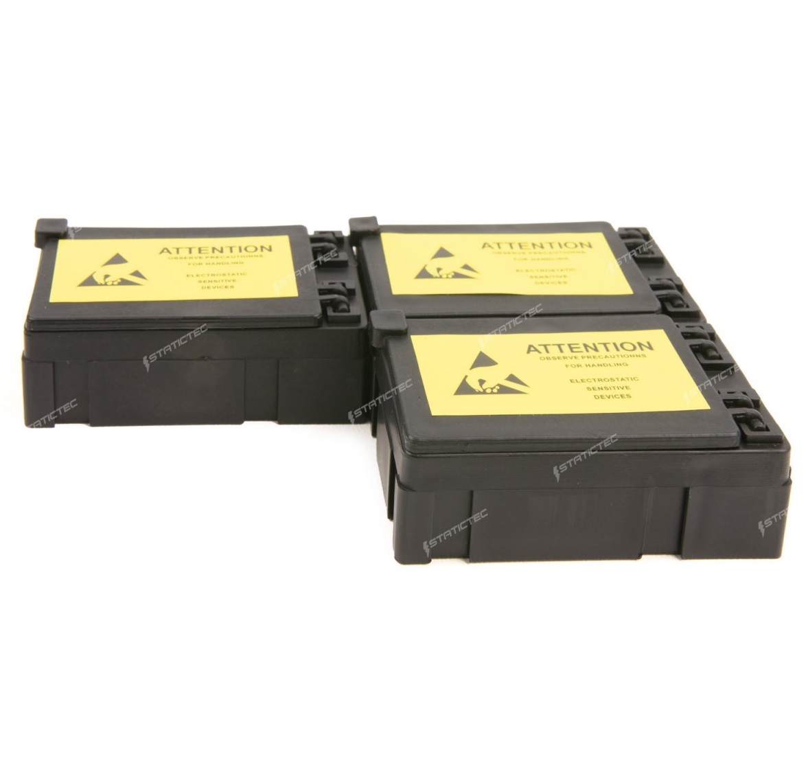 Liten ESD-komponentbox med fjädrande lock.